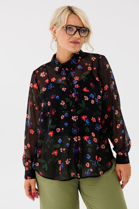 Совместные покупки Уфа Женская одежда Блузки, рубашки — Блуза Anastasia 1134 черный (принт цветы)