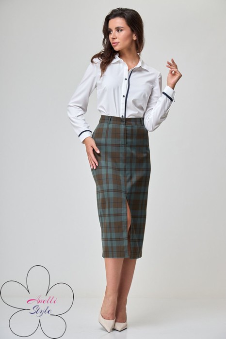 При съемке в образе использованы изделия бренда ANELLIstyle – брюки 1296 и блуза 991.