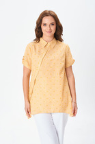 Длинная блузка полуприлегающего силуэта, на бретелях. По груди нагрудные вытачки. Лиф блузона на подкладке. Бретели узкие на регуляторах. Застежка центральная на шнурки-завязки. Длина по спинке 113см.