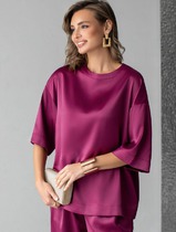 14.04 Vilatte Блузка свободная из струящегося плотного сатина D29.279 бургунди