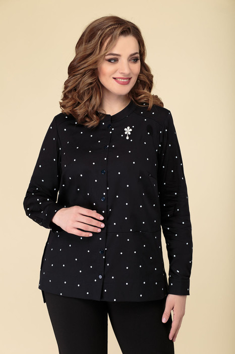 Совместные покупки Уфа Женская одежда Блузки, рубашки — Блуза ДаЛи 5373Б темно-синий+горох