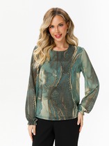 Очаровательная свободная шифоновая блузка, подчеркивающее женственность - отличное решение на каждый день или на праздник для современной стильной женщины. Шикарная модель с объемными длинными рукавами выполнена из высококачественного шифона. Круглая горловина с застежкой на пуговицу на спине. Нежная блузка  из шифона на трикотажном подкладе, по переду сделаны вытачки на грудь, рукава втачные пышные, длинные, снизу собраны на резинку.