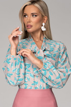 Блузка женская прямого силуэта. Воротник стояче-отложной. Застежка по планке переда на петли и пуговицы. Спинка с кокеткой, со встречной складкой. По боковым швам разрезы. Рукав втачной, с притачной манжетой, застегивающейся на петли и пуговицы. Воротник рубашечного типа. В комплекте обтачной бант.
