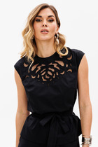Блузка женская прямого силуэта. Воротник стойка. Застежка потайная на петли и пуговицы. В нижней части боковых швов разрезы. Рукава длинные с притачной манжетой на 2 петли и пуговицы В комплекте съемный бант, пристегивающийся на пуговицу к стойке.