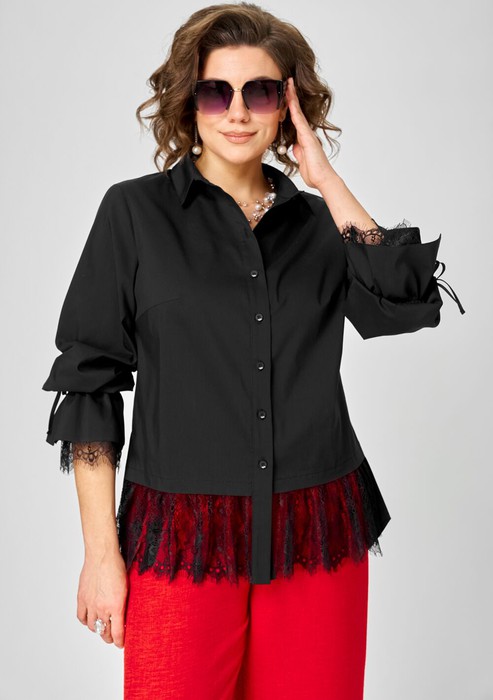 Совместные покупки Уфа Женская одежда Блузки, рубашки — Блуза EVA GRANT 5002-Р черный с кружевом