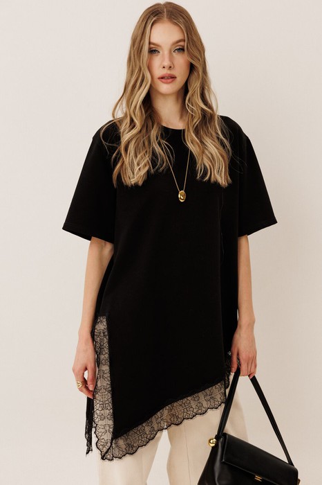 Ассиметричный крой+трендовое кружево = базовая футболка уже не базовая!