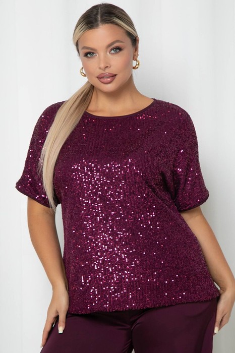 Блузка прямого силуэта из пайеток на трикотажном подкладе с цельнокроеным рукавом.