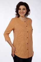 Элегантная женская блузка из шелка-вуали, сочетает в себе современные тенденции 2026 года с классическими акцентами. Подходит как для офиса, так и для особых случая, обеспечивая комфорт и уверенность. Модель полуприлегающего силуэта, с центральной застежкой на петли и пуговицы на планке. Воротник отложной, на стойке. Полочка декорирована имитацией жилетки с ассиметричным подрезом, с застежкой в петлю. Рукав вточной, длинный, на притачной манжете с прорешкой, застежка на 2 пуговки.