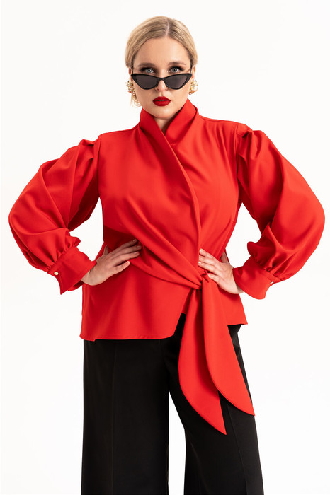 Оригинальная женственная блуза на запах с вырезом станет незаменимой вещью в Вашем гардеробе. Всесезонная блуза с длинными рукавами на манжетах легко впишется в Ваш повседневный, вечерний, а также деловой офисный стиль. Роскошная блузка сочетает в себе легкость и комфорт. Блуза с отрезной баской и воротником стойкой переходящей в борта. Застежка на потайную петлю и пуговицу и на завязки. Рукав длинный, втачной на манжете. По окату рукава обработаны складки. Вы сможете носить эту блузу не только летом, но и осенью, зимой и весной. Стильная женская блуза класса люкс соответствует модным тенденциям 2025-26 года. Ткань отлично тянется и обеспечивает идеальную посадку по фигуре. Мы уверены, что высокое качество Вас не разочарует! Широкий размерный ряд, включающий большие размеры, позволит Вам подобрать подходящий размер. Праздничная блузка скроет несовершенства фигуры, выгодно подчеркивая ваши красоту, женственность и индивидуальность. Элегантная и красивая блуза станет идеальным вариантом как для торжественных мероприятий: выпускной, корпоратив, свадьба, любой другой праздник, Новый год, так и для деловых и повседневных встреч, офиса. Нарядная модная блузка отлично подойдет для фотосессии, похода в театр и свидания. Сезоны, когда вы сможете ее носить: осень, зима, весна.