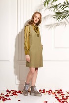 Практичная повседневная блузка прямого силуэта, выполнена из мягкого трикотажного полотна Футер. Блузка по переду и спинке с притачными кокетками, спинка со средним швом. Горловина переда и спинки в форме лодочка обработана узкой притачной планкой. Блузка с оригинальными короткими рукавами с открытыми плечами. Длина рукава в 48 р-ре – 18 см. в 60 р-ре – 18 см., ширина рукава по низу в 48 р-ре – 36 см.В В 60 р-ре – 44 см. По верхним срезам рукавов и швам притачивания кокеток переда и спинки широкая отделочная планка. Блузка без застежек и подклада. Длина изделия по спинке в 48 р-ре – 57 см. в 60 р-ре – 63 см.