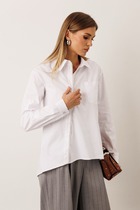 Базовую женскую блузку из льна можно заправить и тем самым подчеркнуть талию, или носить расслаблено на выпуск — низ на резинке позволяет чувствовать комфорт при носке в любом виде.
