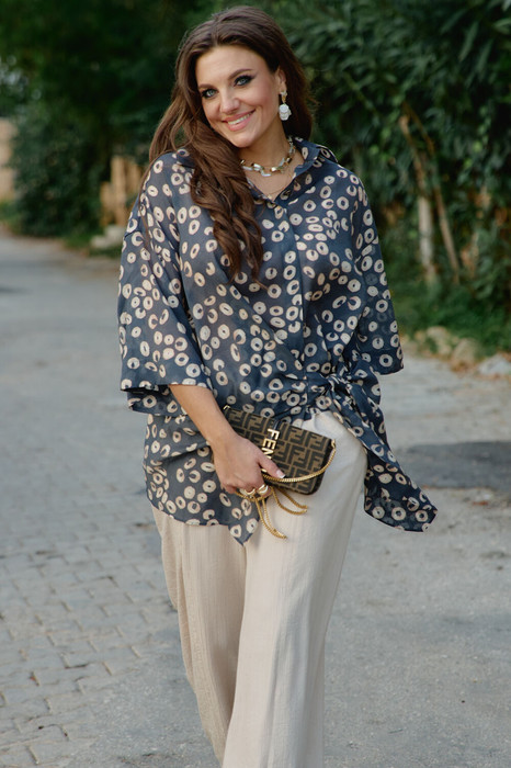 Совместные покупки Уфа Женская одежда Блузки, рубашки — Блуза Vittoria Queen 28613бл серо-синий, принт горохи