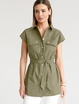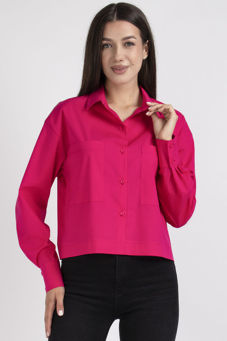 Рубашка женская, прямого силуэта со спущенным плечом.