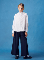 Трикотажный блуза из линейки VAY KIDS школа. Отложной воротничок, застежка на пуговицы с ажурной отделкой.