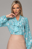 Базовая блузка из шифона, свободного кроя. Рукав длинный, втачной, с резинкой по низу. Особую оригинальность этой блузке придает бант на горловине. Эту нарядную блузку можно комбинировать и с юбкой, и с брюками.