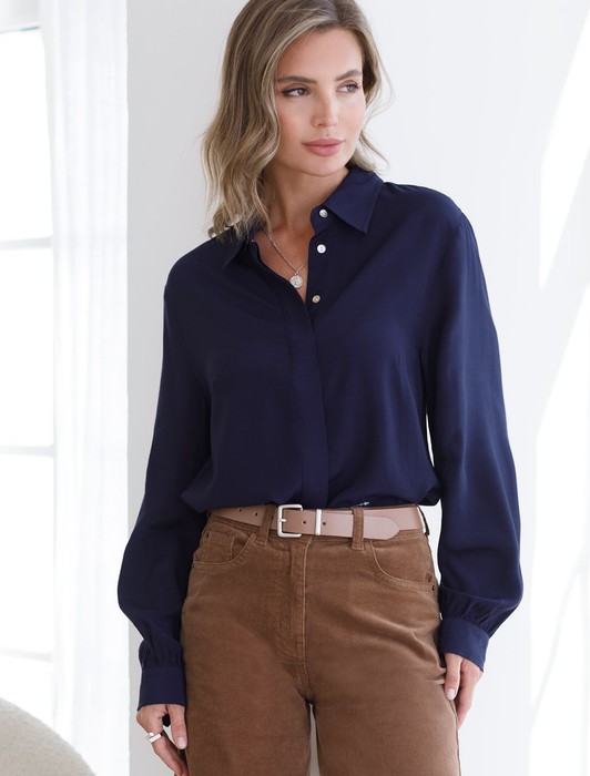Состав: 55%Вис 45%Лиоцелл (Вис) Параметры модели на первом фото: Рост 172, бюст 88, талия 64, бедра 88Блузка выполнена из премиальной вискозы и лиоцелла. На спинке изделия фирменный логотип бренда. Застежка на пуговицы из натурального перламутра. Приятная на ощупь ткань охлаждает кожу в жаркую погоду. Отлично впишется в нестрогий офисный дресс-код или в расслабленном повседневном образе с джинсами.