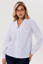 Блузка прямого силуэта из плательно-блузочной ткани софт с V-образным вырезом.