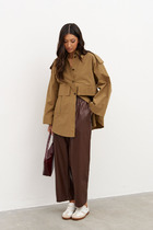 Рукав покроя реглан с вытачкой в верхней части, большого объема, на сборке с притачной манжетой по низу.