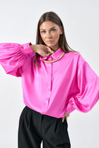 Блузка прямого силуэта из плательно-блузочной ткани софт с V-образным вырезом.