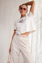 Блузка с короткими рукавами из плотного струящегося сатина