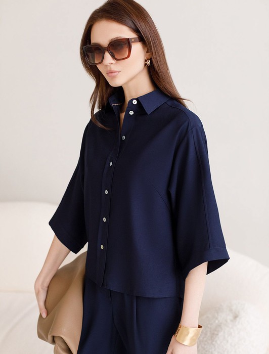 Блузка с широкими рукавами 3/4 из плотного лиоцелла