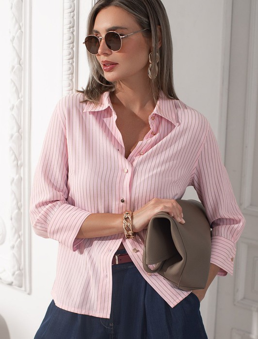 Состав: 75%Хлопок 25%ПЭ Плотность: 108 Г/м2Стильная блузка пудрового цвета в бежевую полоску создаст эффектный образ на весну и лето. Свободный крой с рукавом 3/4 создает эффект легкой непринужденности и комфорта, а манжеты на рукавах добавляют аккуратности и завершенности образу. Отложной воротник придает блузке классическую нотку, которая гармонично сочетается в деловом образе. Эластичный хлопок гарантирует отличную посадку, подчеркивая достоинства и скрывая недостатки, при этом сохраняет свежесть на протяжении всего дня. Такая рубашка станет великолепным выбором для тех, кто ценит удобство и стиль одновременно. Повседневная блузка удачно сочетается с различными предметами гардероба, позволяя создавать стильные и практичные образы в любую погоду.