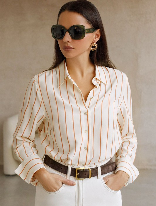 Совместные покупки Уфа Женская одежда Костюмы, комплекты — Блузка свободного силуэта в тонкую полоску из эластичного хлопка