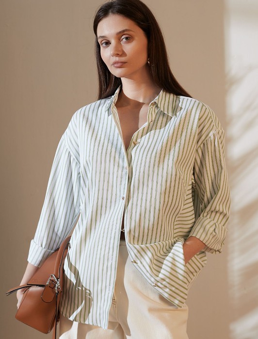Блузка свободного силуэта в тонкую полоску из хлопка