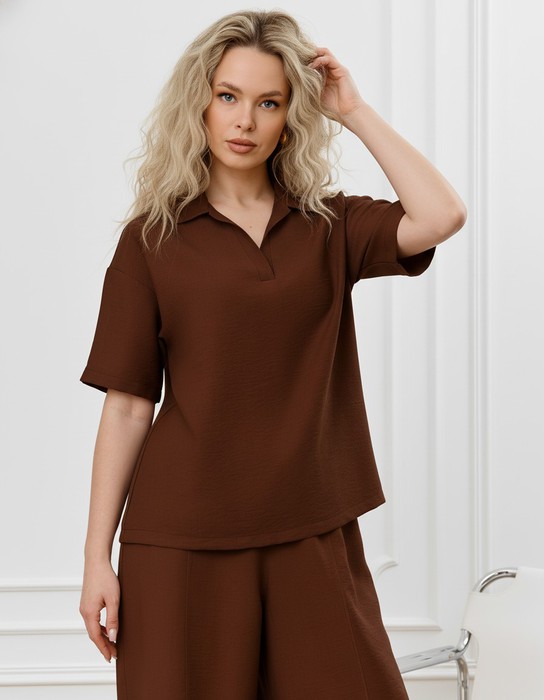 Совместные покупки Уфа Женская одежда Блузки, рубашки — Блузка женская Ясмина-1 БЛЖ-001 КОРИЧНЕВЫЙ