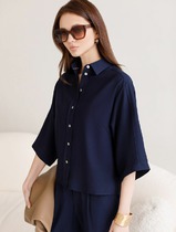22.03 Vilatte Блузка с широкими рукавами 3/4 из плотного лиоцелла D29.354 темно