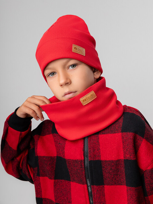 Совместные покупки Уфа Детские аксессуары Шапки — Bodo Комплект (шапка, снуд) с кожзам нашивкой 13-201MU красный