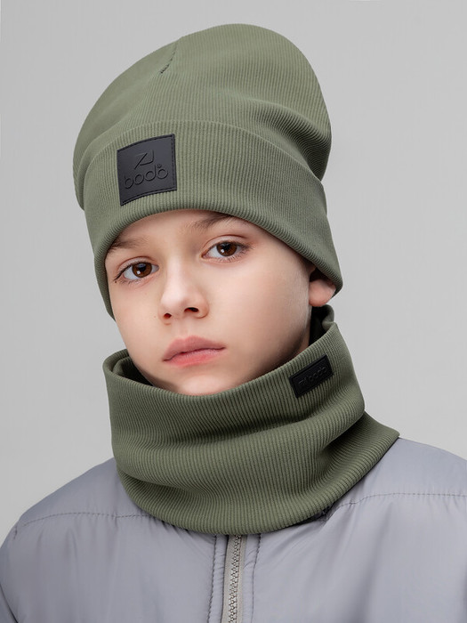 Совместные покупки Уфа Детские аксессуары Шапки — Bodo Комплект (шапка, снуд) с ПВХ нашивкой 13-162MU темно-оливковый
