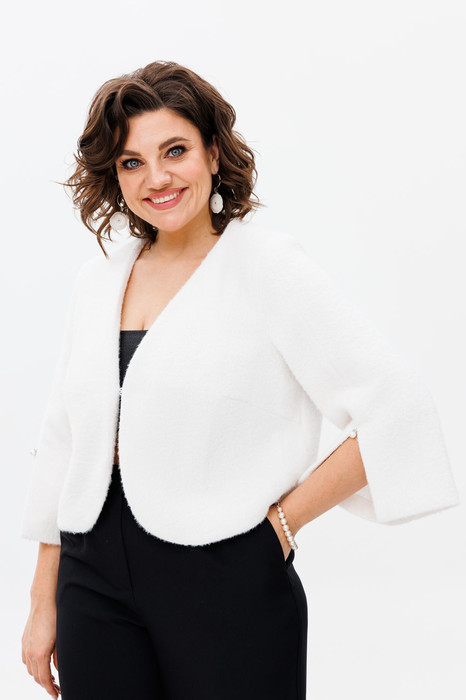 Любое платье дополняется прекрасным жакетом, придающим образу изысканный завершающий штрих. Фигурные рукава которого украшены красивыми бусинами, добавляют ему дополнительную изысканность. Благодаря мягкой текстуре и утепляющим свойствам, это болеро не только прекрасно держит форму, но и обеспечивает теплую и комфортную атмосферу в любое время года.