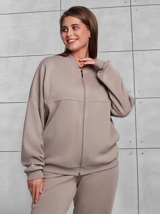 Куртка – женская из гладкокрашенного трикотажного полотна «лининг» прямого силуэта, свободная, с длинными втачными рукавами, горловиной овальной формы, обработанной втачной планкой, центральной бортовой застежкой на тесьму «молния». Полочка состоит из трех деталей, на нижней части в рельефах выполнены карманы, низ изделия с притачным поясом, рукава с притачными манжетами. Пояс, планка горловины, манжеты рукавов выполнены из трикотажного полотна «кашкорсе».