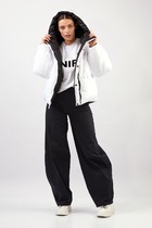 Куртка – женская из гладкокрашенного трикотажного полотна «лининг» прямого силуэта, свободная, с длинными втачными рукавами, горловиной овальной формы, обработанной втачной планкой, центральной бортовой застежкой на тесьму «молния». Полочка состоит из трех деталей, на нижней части в рельефах выполнены карманы, низ изделия с притачным поясом, рукава с притачными манжетами. Пояс, планка горловины, манжеты рукавов выполнены из трикотажного полотна «кашкорсе».
