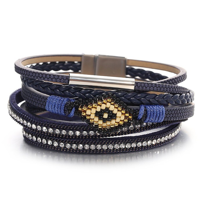 Браслет, арт.656963 , р. 18, 0 гр., кожа , сталь , стекло