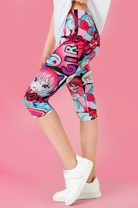Хлопковые бриджи с принтом подходят для спортивных тренировок, танцев и гимнастики. Они станут отличным решением для физкультуры. Подростковые капри из трикотажа идеальны для дома, отдыха на природе и домашних дел.
