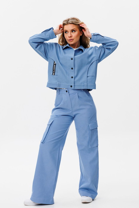 Брюки прямого силуэта, на притачном поясе с застежкой на тесьму-молнию по переду. По боковым угловые карманы. По левому и правому полотнищу брюк накладной карман "Книга" с клапаном.
