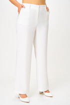 Брюки-джоггеры выполнены из трикотажного полотна молочного цвета. Характеристики: прямой крой, пояс на шнурке-резинке с фиксатором, в боковых швах карманы, штанина внизу на резинке с фиксатором. Длина 105 см.
