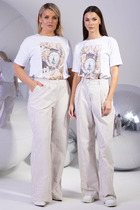 Брюки из ажурного вискозного трикотажа, прямого силуэта, с поясом на резинке со шнуром. Функцию подкладки брюк выполняют трикотажные шортики телесного цвета.