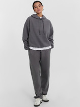 Джоггеры из мягкой и пластичной экозамши, прямого силуэта, с боковыми карманами спереди, и фигурной кокеткой сзади. Пояс с резинкой. В боковых швах контрастные лампасы.
