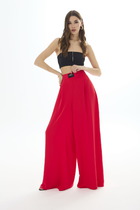 Легкие брюки-палаццо из тонкой хлопковой ткани, пояс на резинке, в боковых швах карманы с отрезным бочком. Длина по боковому шву 102 см, ширина внизу 31 см.