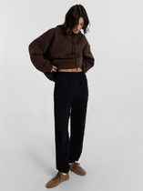 Брюки их эко-кожи немного заужены к низу. На притачном поясе со шлёвками, застежкой-гульфик. Пояс застегивается на петлю-пуговицу. По переду рельефы и карманами в них. По спинке вытачка от пояса. По переду и спинке брюки отрезные по лини колен.