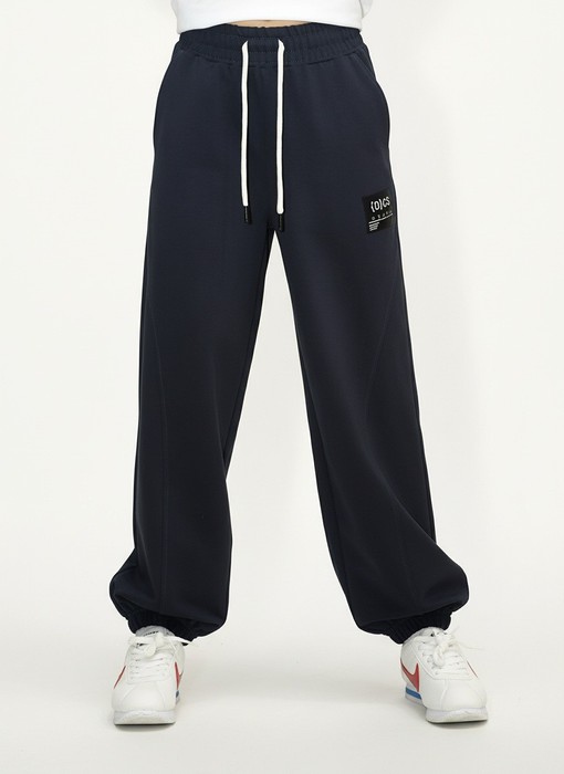 Брюки для девочки из трикотажного полотна "футер-двунитка", на притачном поясе с эластичной тесьмой внутри, с карманами в боковых швах и отделочными деталями фигурной формы на передних половинах. Нижние срезы брюк обработаны с эластичной тесьмой. По швам притачивания отделочных деталей, декоративных вставок и карманам настрочены отделочные строчки. На правой передней половине брюк ниже уровня колена настрочен декоративный элемент прямоугольной формы. Через две петли в центре пояса продет шнурок, позволяющий регулировать степень прилегания изделия по талии.