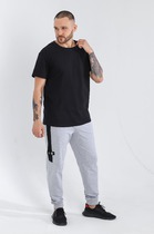 Мужские брюки из футера с лайкрой. Вертикальные полоски по бокам, внизу манжеты, пояс на резинке с вдетым шнурком, имеются карманы, декоративная вышивка. Размеры от 48 до 54. Есть возможность розничного заказа данного товара.