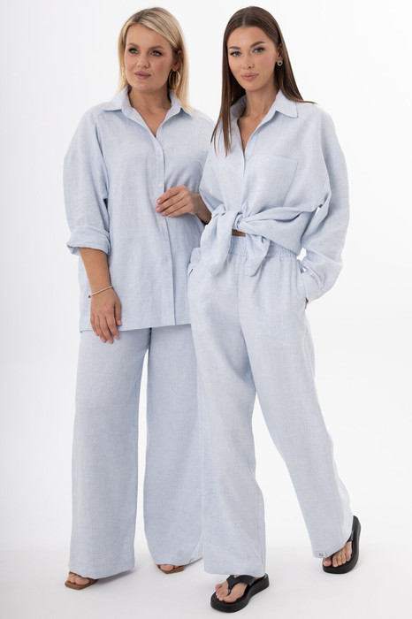 Универсальный дизайн подходит для офиса, прогулок или путешествий, легко комбинируется с базовыми футболками, рубашками и объемными кардиганами. Выбирайте брюки из льна с вискозой — ваш надежный спутник в мире современной моды, где ценится экологичность, комфорт и безупречное европейское качество.