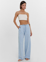 Брюки женские прямые, с высокой посадкой на притачном поясе со шлевками. На спинке в пояс вставлена резинка. Застежка на молнию с гульфиком и откоском. Брюки из тонкого джинса.