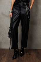 Брюки со стрелкой свободного кроя, верхний срез представлен широкой резинкой, с карманами.