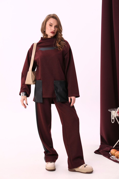 Совместные покупки Уфа Женская одежда Брюки — Брюки NIKVA н909-1 винный+чёрный