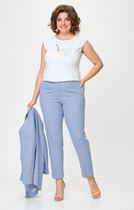 Элегантные брюки прямого кроя с боковыми карманами с отрезным бочком. Застежка на молнию и пуговицу. По переду - складки. Задние половинки с талиевыми вытачками и прорезными карманами с листочкой. Верхний срез обработан притачным поясом, по спинке собран на резинку. Низ обработан швом в подгибку.